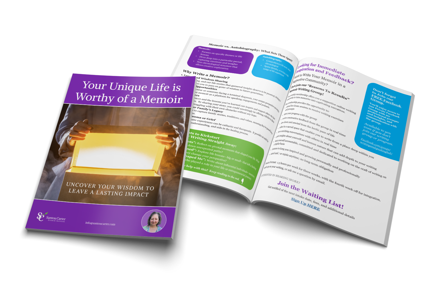 By downloading this resource, you’ll receive some prompts to get started in writing your memoir. You can work on your own, in a facilitated group session, or in private one-to-one sessions with a published psychotherapist and accountability coach.